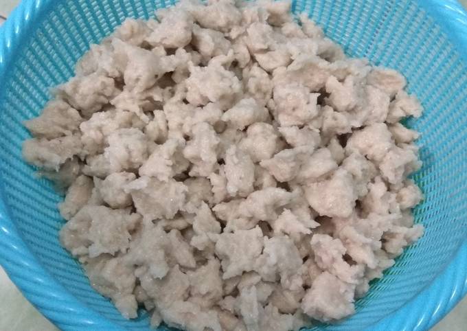 125 gr tepung sagu tani. Uleni sebentar tidak perlu sampai kalis. 250 gr daging ikan tenggiri haluskan.
