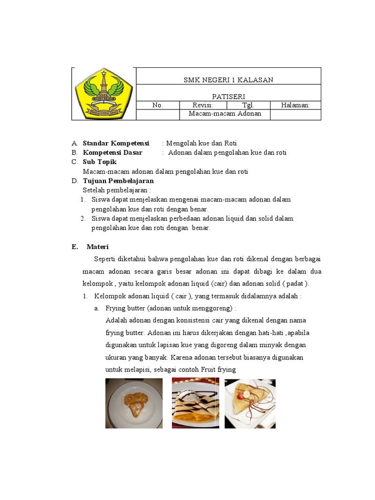 Materi Adonan Kue Roti Smk 1 Kalasan Pdf